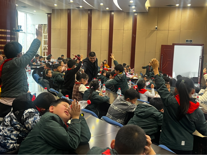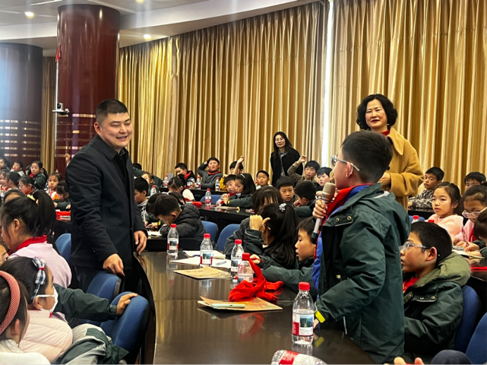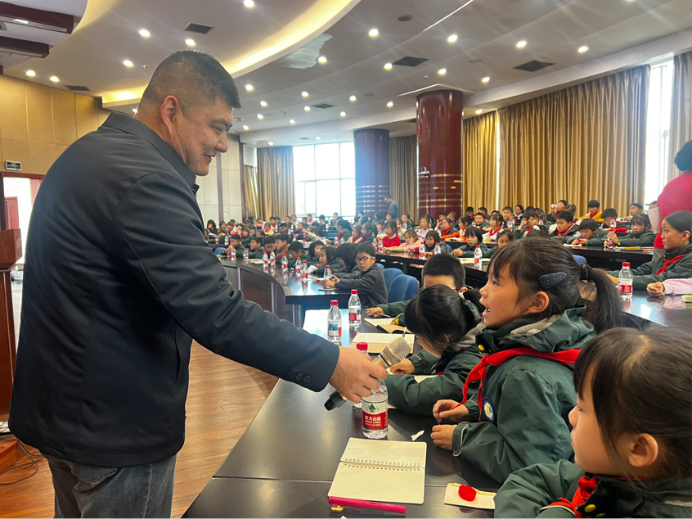 交流环节气氛热烈,学生们踊跃举手、争相提问:“高铁玻璃有几层呢?”“车轮为什么不会脱轨?”“车轮材质有什么特殊讲究?”……一个个充满童趣又贴近科学本质的问题接连抛出。赵鑫研究员耐心细致地逐一解答,还以专业现象为切入点,与孩子们展开轻松而富有启发性的对话,现场掌声与惊叹声此起彼伏,科学探索的热情在空气中尽情洋溢。