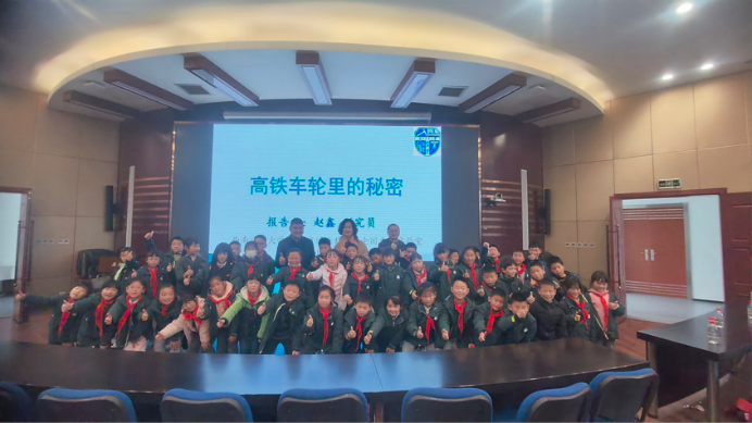 讲座尾声,赵鑫研究员寄语孩子们:“希望大家能借着了解高铁车轮秘密的契机,始终保持对科学的好奇与探索欲;也祝愿大家在未来的学习中都能快乐学习,为将来打下坚实的基础,未来鹏程万里。”