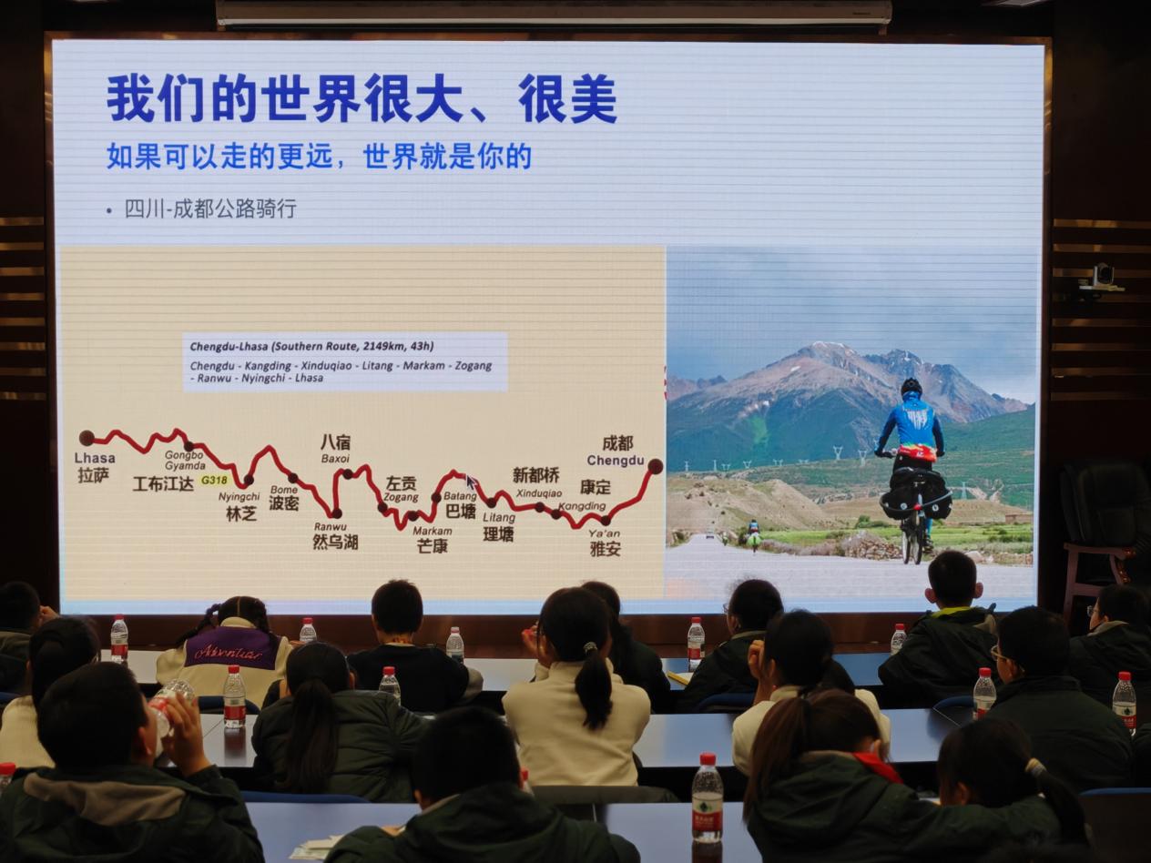 讲座伊始,栗老师先是分享了自己小学时的一个经历,鼓励孩子们学习不只是为了考试,更为了能帮助他人、让周围的世界变得更美好。希望孩子们始终带着愉快和主动的心去学习、去生活。随后,讲座正式进入“世界城市与我”板块。他提到如今经常看到年轻人从成都骑行到西藏的现象,他们用车轮丈量土地,用眼睛记录风景。世界属于敢于出发的人,也属于愿意为他人铺路的人。